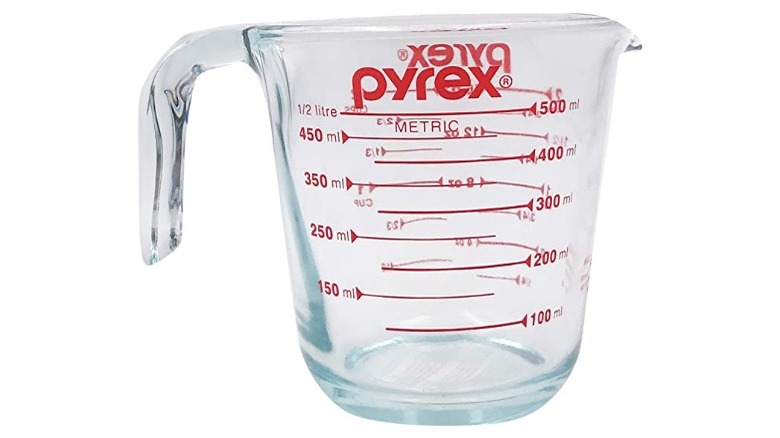 A generously sized measuring cup is an essential item when you're serious about cooking or baking. Arguably the gold standard when it comes to glass kitchen utensils given that it's been around for over 100 years, one that's offered by Pyrex has the benefit of not only functionality but a timeless, nostalgic design that fits into pretty much any kitchen's aesthetic. It's also giving you a lot that you need to know about measurements. It holds two cups and also provides the metrics on milliliters.