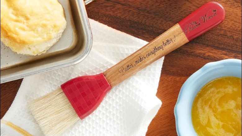 A basting brush is a must-have item to have at the ready within your kitchen arsenal. This is an especially useful tool if you're baking — use it to give biscuits a gentle coating of butter, or to add a sugary glaze to a pie. With grilled meat — especially if it's pork ribs — you're going to want to keep applying dabs of delectable barbecue sauce over a long cook.