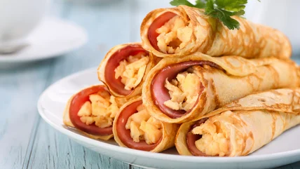 Crepes are an elegant option that can adapt to any wedding budget. If you're on a smaller budget, offer simple, flavorful toppings like Gruyere cheese and sautéed mushrooms; for a more extravagant option, set out crème fraîche and caviar.