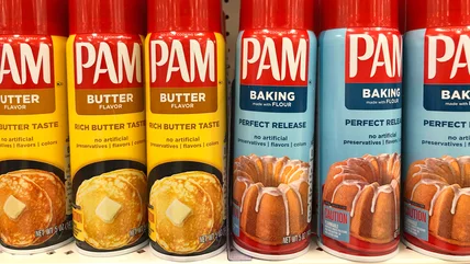 Nonstick cooking sprays like PAM can be lifesavers in the kitchen. Anyone who's ever had a hard time getting a cake or piece of meat unstuck from a skillet knows the pains of skipping the important step of adding some grease to the pan first. These cooking sprays are great because they evenly apply a layer of fat to the surface of pans, cake tins, and baking sheets. There's just one huge problem with these products though that will change the way that you use them.
