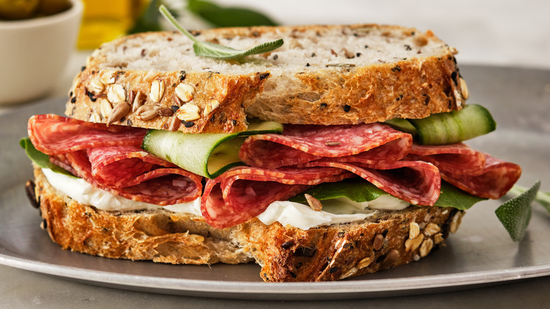 Using a layer of spread to stop moisture is a great trick, but it's not the only thing that can improve your pre-made sandwiches. It's important to think about what you are putting in your sandwiches. If you're using tomatoes, it's worth it to scoop out the seeds and only use the flesh; that will give you all the flavor without all the extra moisture. Similarly, opting for a seedless cucumber gives your sandwich some crunch, but lower water content.
