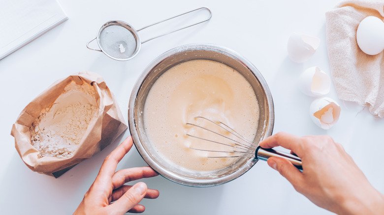 Unfortunately, it's relatively easy to end up with a tough, chewy pancake. Chewiness is the result of too much gluten formation, and it usually occurs when the flour is overworked. An easy way to prevent this from happening is to err on the side of undermixing instead of focusing on getting rid of all the lumps in the batter. But according to Ina Garten, an even more foolproof approach to achieving perfectly tender pancakes is to add two extra ingredients: ricotta and cornstarch.