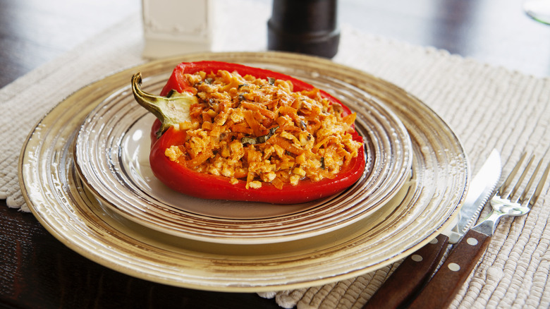 The delectable dish is fit for a king or queen. Former royal chef Darren McGrady, who cooked for the royal family for 15 years, states that stuffed peppers were one of Princess Diana's favorite meals. Speaking about his experiences in the kitchen with the royal family to The Huffington Post, McGrady shared a version of stuffed peppers he used to prepare for Diana. Those peppers were stuffed with onion, mushrooms, zucchini, tomatoes, and chopped crispy bacon bits for flavor and texture. According to McGrady, he would cook stuffed peppers for Princess Di around two to three times a week, as he told Delish. His healthy peppers were one of her go-to dishes.
