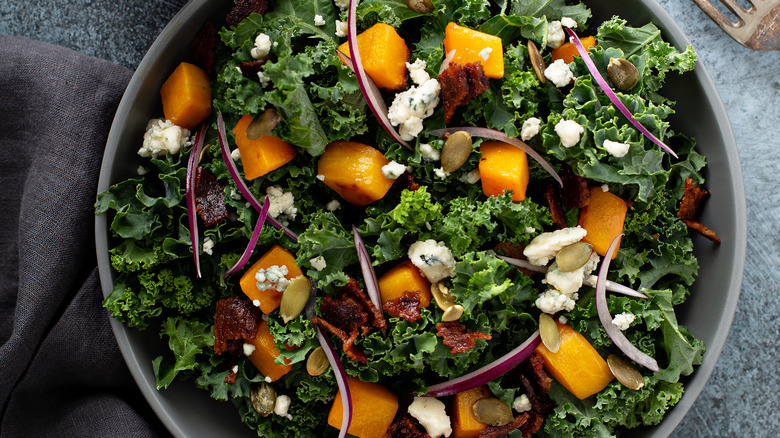 With all of those health benefits, it's a good idea to add more kale to your regular diet. But the veggie is known to taste a little bitter, especially in comparison with other leafy greens. Cooking it can make it far more appealing in flavor and mouthfeel. And while cooking kale may adversely impact the levels of water-soluble vitamin content, it can render kale more easily digestible. However, there are also plenty of ways to spruce up raw kale and neutralize its bitterness. Understanding some tips for preparing this superfood in both cooked and uncooked applications can jumpstart your ability to incorporate kale into your daily diet in several clever ways.