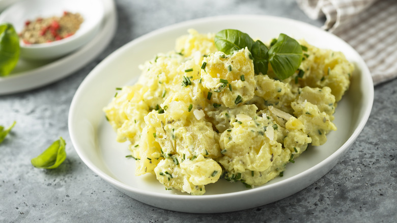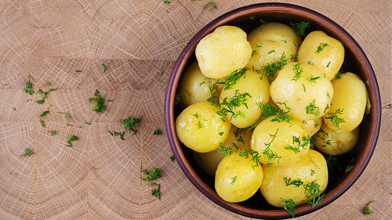 This tasty trick works on all kinds of potatoes, so use quartered russets, tiny new potatoes, or buttery fingerlings. Just be sure to either peel or cut your potatoes, or use potatoes that have thin enough skins so the pickle juice solution can really permeate the flesh of the spud. Once your potatoes are fork tender, drain them and get to work. They can easily pan-fry to a golden crust, now that they are already tender in the middle. They are already on their way to a delicious potato salad, just add some more fresh dill and the mayonnaise or vinegar dressing of your choice. And, of course, they are set to go as is for an accompaniment to steamed shellfish. The best thing about this pickle juice hack isn't even the delicious taste, it's about the sustainability aspect of using every part of an ingredient. Okay, the delicious part is pretty good, too.