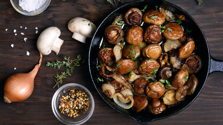 Because of this, the cookbook author advises against carelessly throwing your mushrooms into a skillet with a bunch of other veggies. After all, doing so can prevent you from giving ample time to this star ingredient. Instead, she recommends starting your mushrooms off in the pan by themselves, and slowly adding other elements in. This will guarantee that your mushrooms have the time they need to cook all the way through, allowing them to grow juicy and meaty, yet tender.