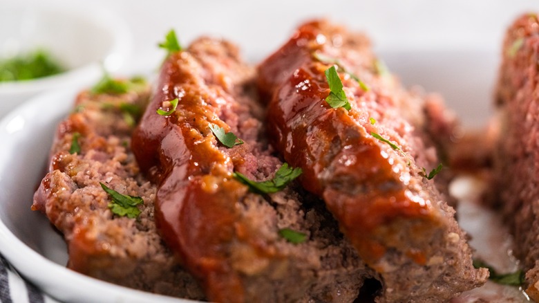 Trisha Yearwood is a self-proclaimed "meatloaf snob." As she revealed in an episode of "Trisha's Southern Kitchen" (via YouTube), "I don't like it to be too dry. I don't like it to be too juicy. Both of those are not good." Because of this, Yearwood is careful not to add to much egg to her meatloaf, ensuring that it won't turn into a soppy mess. She also says that she prefers turkey meatloaf over the traditional beef version, as the meat is "leaner" and therefore less "mushy."