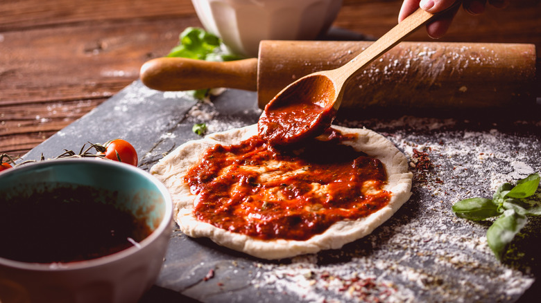 While this advice may be controversial in some circles, it's actually quite sound. Yearwood's loaded pizza recipe, for example, calls for two full pounds of pizza dough, which is then topped with chicken, ham, tomatoes, pepperoni, bacon, cheese, and other ingredients. In this case, the less time you spend perfecting your pizza dough, the more time you will have to chop your veggies, cook your chicken, and shred your cheese. Purchasing store-bought dough, then, is the perfect way to create a pie that has truly high-quality toppings.