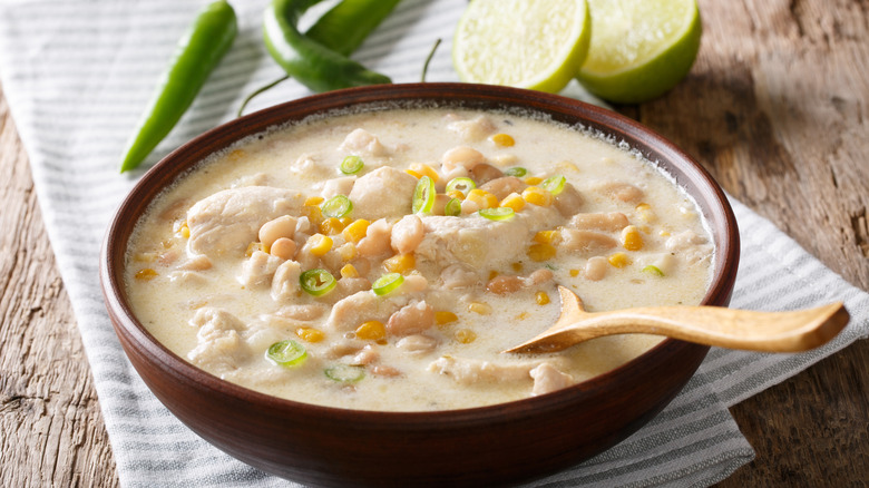 When you close your eyes and imagine the perfect bowl of chili, what do you see? If it's a classic bowl of ground beef and tomatoes topped with shredded cheese, you probably aren't alone. After all, that's one of the most common types of chili out there, and it is certainly delicious. That being said, there is another way to prepare this traditional dish, using primarily monochromatic ingredients. By using white beans and poultry in her chili recipe, Trisha Yearwood manages to make a type of soup that resembles a big bowl of cream.
