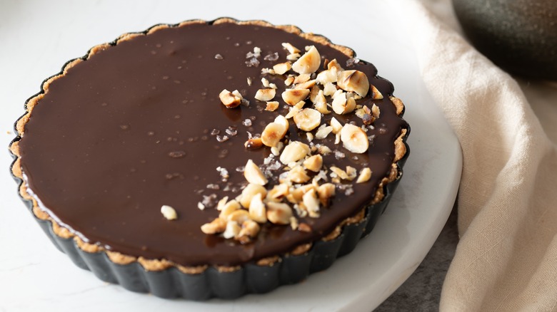 Sometimes, the most delicious recipes are the ones that are the easiest to make at home. And because Trisha Yearwood is not your typical celebrity chef, her Southern cooking tips often keep things simple. Thus, when it comes to making a homemade chocolate pie, Yearwood recommends ditching the famously difficult pastry pie crust and instead preparing a simpler one, using crushed graham cracker bits. In an episode of "Trisha's Southern Kitchen" (via YouTube), the television host explained, "Graham cracker crust is not really typical, right? I mean, I don't know how you grew up ... I always had [my chocolate pie] with pastry [crust], but I love the graham cracker crust."