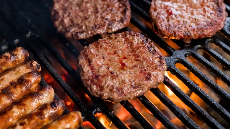 Lean burger meat isn't the best for grilling, and a lower percentage of fat is a major reason why burgers often turn out dry, but it's not the only one. Lean meat also takes less time to cook. Therefore, if you were to grill up your low-fat burger for the same amount of time as you normally would with a regular burger, you'd be overcooking it. Using a thermometer and taking the burger off the heat as soon as it hits 160 degrees Fahrenheit will help prevent it from completely drying out. Still, if you want the burger to be just as juicy as an 80/20 patty, there's one modification you should be making to the ingredients — adding gelatin.