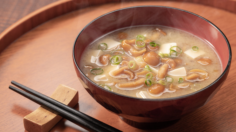 Now, let's talk about the name: slimy mushroom. To understand where it comes from, you only need one look at these mushrooms' caps, which are amber to orange in color. Their more notable trait, however, is the slick, shiny substance coating them, a type of naturally occurring gelatin. This coating develops under humid conditions, and growing nameko mushrooms in a dry climate would theoretically reduce or even eliminate their sliminess. However, doing so would deprive you of the unique culinary properties these mushrooms possess. Speaking of which, it's time we talk about the role nameko mushrooms can play in your kitchen.