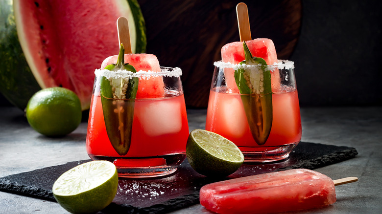 What if you don't have a hair iron or can't find the right kind of pops needed to complete this particular summertime hack? Thankfully, regular popsicle molds work just fine. Giada De Laurentiis offers up enticing boozy watermelon popsicles on Giadzy featuring 3 pounds of peeled watermelon (cut into 1-inch chunks), ¼ cup of sugar, ¾ cup of watermelon-flavored vodka (she specifically recommends Smirnoff's Twist of Watermelon if you can find it), and ½ cup of fresh, chopped mint leaves.