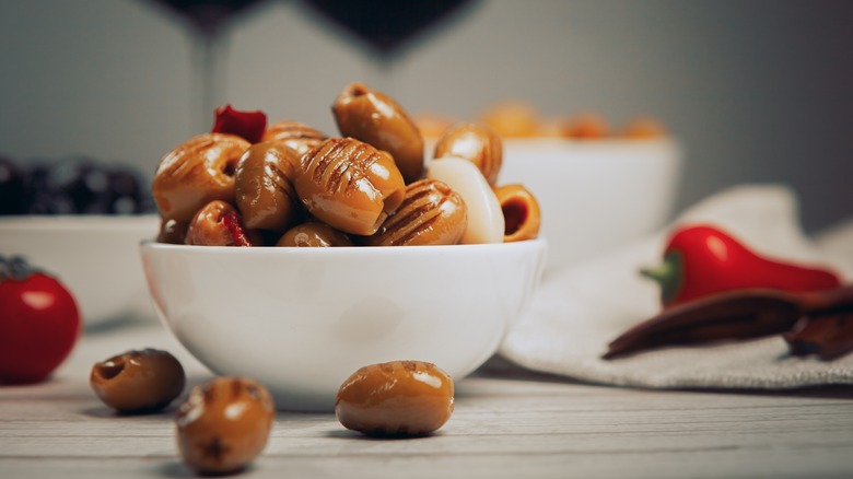 Unlike peaches or nectarines, olives are technically a stone fruit (or drupe) because of that pit. However, unlike its juicy cousins like apricots and plums that really reach their peak in warm summer months, olives can be enjoyed year-round. This is because they are cured or fermented to reduce their bitterness, which is why they can be bought in the jarred section of grocery stores. That means you can plan your olive-centric dinner and lunch menus with abandon.
