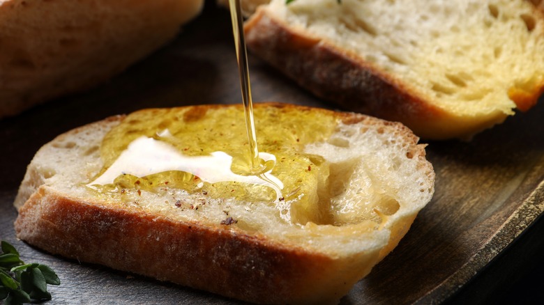 The simplest, and arguably best, swap to make is to use olive oil instead of butter. Olive oil has a distinctive taste of its own when used raw, with an earthiness and slightly herbal flavor that make a nice counterpoint to the ham and cheese. Extra virgin olive oil, in particular, is more robustly flavored and is also full of monounsaturated fats and antioxidants, both of which can be beneficial for your heart health, per Healthline. If you prefer your fats to be neutral-tasting, but you still want the mouthfeel and heartiness that fat supplies to a sandwich, try using a brushing of canola or sunflower oil.