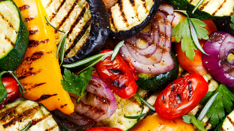 All it takes is a little bit of heat. Make some grilled summer vegetables by slicing up some eggplant, zucchini, red onion, tomatoes, and garlic, and tossing them in a hot pan, one by one, until they're charred and cooked through. Cook your tomatoes last, and then add in any seasonings that you like (dried herbs and heat-giving spices are excellent here, as well as salt), before mixing all of the vegetables. Take them off the heat, and then once they've cooled completely, grab a small amount of the mixture with your tongs, and place them in your sandwich. It'll make the whole thing bigger and better.