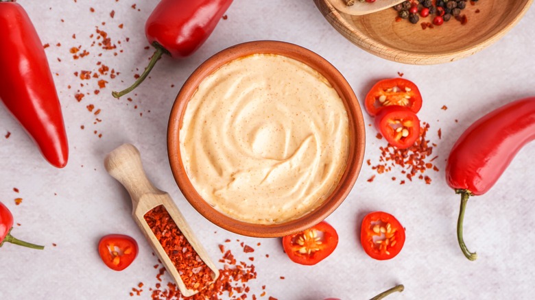 Our top choice to amp up a ham and cheese, though, is chipotle mayo. Chipotle brings a smokiness and heat to a ham and cheese sandwich, introducing a whole new level of flavor that heightens the impact of the fillings. The mayo aspect, meanwhile, brings down the intensity of chipotle, ensuring that things don't get too hot. The best part is, chipotle mayo is super easy to make at home — all you need is a jar of chipotle paste and some standard mayonnaise. And if you want to make it really special, add some honey for some sweetness that cuts through the spice.