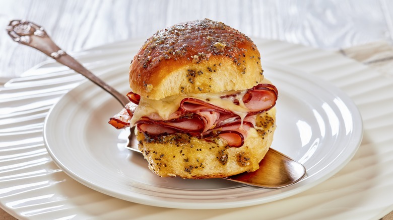 In this world, we need things that we know we can just rely on. And sometimes, those things come between two slices of bread. The ham and cheese sandwich is as trusty as they come, and it's a choice that people come back to time and time again. In a survey conducted by Contract Testing, ham and cheese was the top pick out of all the sandwich choices out there by almost half of all the people taking part. And honestly, we get it. The combo of savory, slightly sweet ham, and creamy, mellow cheese makes a dynamite flavor pairing, and the protein and fat that both items contain can keep you satisfied for hours.