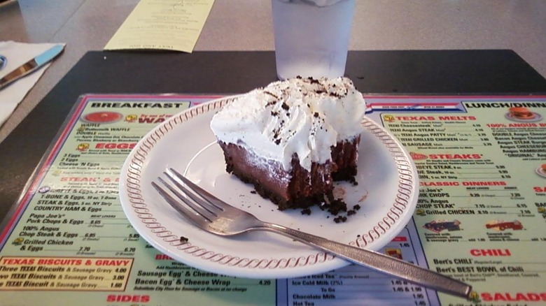 Waffle House also has menu items that will satisfy your sweet tooth. The Triple Chocolate Pie reveals its excess in the name, and a quick glimpse at the nutrition facts shows why it's an item best left unordered. Even the small slice of Triple Chocolate Pie has 440 calories and 190 of these calories are from fat — that's a lot of calories for a little dessert. The small slice also has 21 grams of fat and 7 grams of saturated fat. It has high amounts of both sodium and sugar, with 330 milligrams of sodium and 35 grams of sugar.