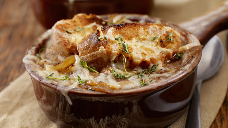 Prepping ingredients ahead of time ensures you can whip up tasty meals without a lot of hassle. For instance, caramelized onions are a delicious addition to a variety of recipes when you're looking to boost flavor. Because the process of caramelizing onions can be a bit labor-intensive, it's best to make more than you need and save the leftovers for future meals. However, you'll need to find a suitable storage method to ensure your caramelized onions maintain their awesome flavor. Surprisingly, a wonderful storage method might be in your freezer right now. And even more surprising, this storage tool might be something you're considering tossing.