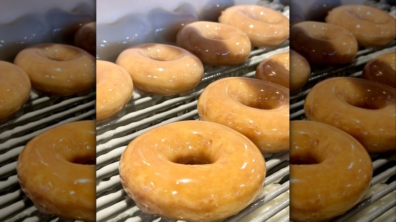Over time, each store was outfitted with its own donut processing equipment, mass-producing glazed donuts in hot oil and pushing them through a curtain of icing glaze via a conveyor belt, which still happens at locations to this day. Storefronts aren't just limited to the States, though. There will be 35 countries with Krispy Kreme locations by the end of 2023, including Mexico, Asia, the Middle East, Australia, Canada, and Europe.