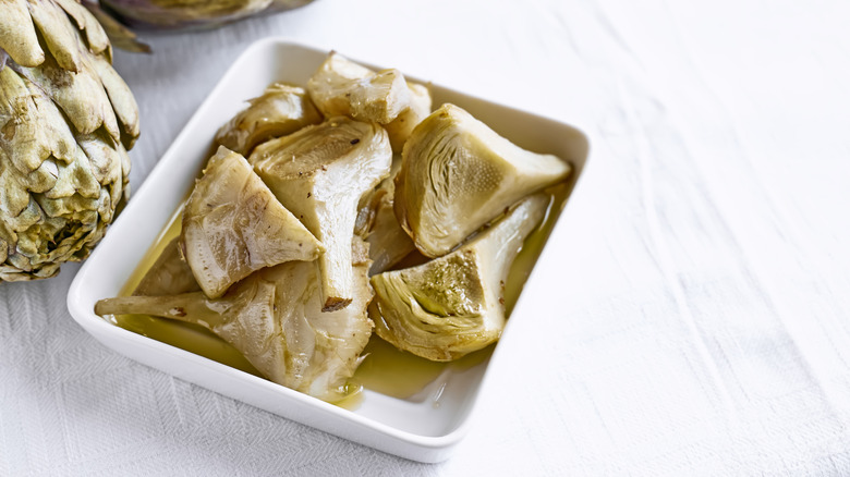 If you want a method to make monumental crepes, look no further than topping it with cooked artichoke and habanero pepper pieces. Specifically, the mouthfeel of artichoke hearts is the ultimate balance of meaty and soft. Meanwhile, when it comes to taste, their herbaceous qualities shine, primarily when you serve them with the fruity, yet hot, habanero peppers. To prepare the artichokes, you can steam, boil, bake, or even grill fresh ones. Canned artichoke hearts are pretty tender and already cooked, so you just need to heat them (if you accidentally overcook them, they are unpleasant to chew).