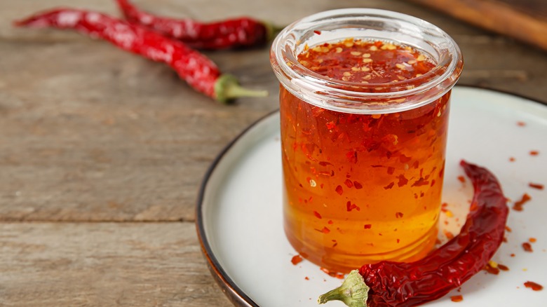 Drizzle hot honey onto the crepes to instantly make the food more enticing. Most hot honey has a bolder look than regular honey, thanks to the red pepper flakes, spices, or added hot sauce. Aside from its intriguing looks, the condiment is a blend of sugary and fiery flavors. You can use it with savory and dessert crepes. If you plan to use it with sweet crepes, try to couple it with a creamy component like whipped cream.