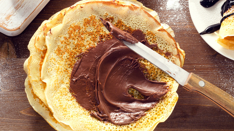 The first route is to dip the potato chips in Nutella and use them as a garnish. You'll want to crush them up a bit because you'll be able to pick them up with a fork easier. Another option for those who crave Nutella's richness is to spread a layer on top of the crepe. Then, complete the dish when you sprinkle on the salty chips. Either way, the dish's display catches everyone's eye because it's not a typical-looking crepe. This kind of crepe is a perfect contender for brunch parties when you want to serve something remarkable.