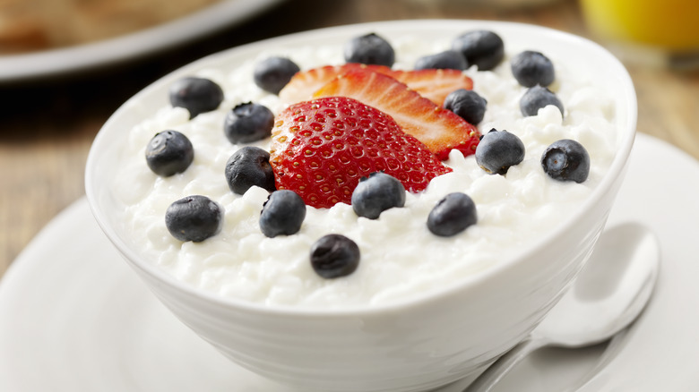 For those who haven't encountered this trend or stopped to listen to TikTokers raving about their frozen creations, cottage cheese ice cream might sound like a food dare not meant for the faint of stomach. However, there's a reason it actually works. According to the National Center for Biotechnology Information, fresh cheeses, such as cottage cheese, do not undergo a ripening process, which is where flavors develop. As a result, cottage cheese has a milder profile than matured cheeses. The lack of cheesy taste makes it a good canvas for other flavors — even sweet ones.