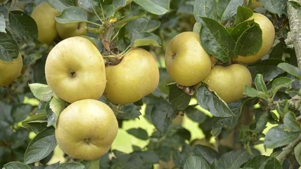 The variety isn't a clear hybrid between the two fruits. Rather, it is named for its aroma. As the apples ripen and become ready to eat, a scent similar to that of bananas wafts off of them. Though the smell may be mild, it is reportedly more intense once the apples are sliced — the inner fruit may even have a slight banana-like flavor as well. The exterior bears a slight resemblance, too. The Summer Banana apples ripen to a yellow-green color, though the skin can also be decorated with pinkish or reddish spots.