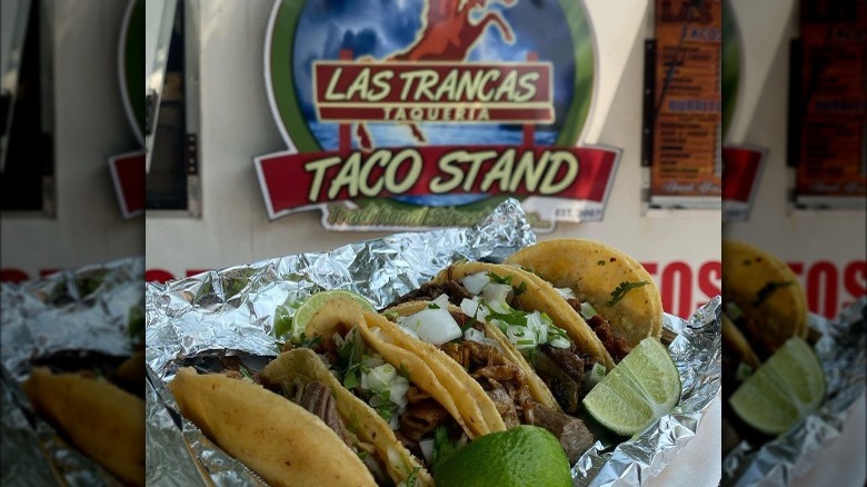 If you head to a mainstream U.S. taco spot, you'll likely only find the basic "chicken, beef, or fish" options. At Las Trancas Taco Stand, you get so much more than that. When it comes to taco fillings, this food truck offers types of meat that are only rarely available at North American restaurants. In addition to staples like brisket or pork, Las Trancas serves tacos full of ingredients like beef cheeks, pork stomach, tongue, and even pork skin.
