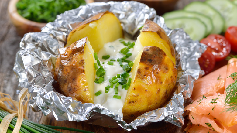 It's often said aluminum foil can improve your potato-dining experience. Want to cook a baked potato over less time or have it stay on the counter for a while? Wrap it in aluminum foil, the myth goes; this will supposedly prepare it faster and more thoroughly than without the metal layer. Unfortunately, this tactic can leave you with one mushy murphy.