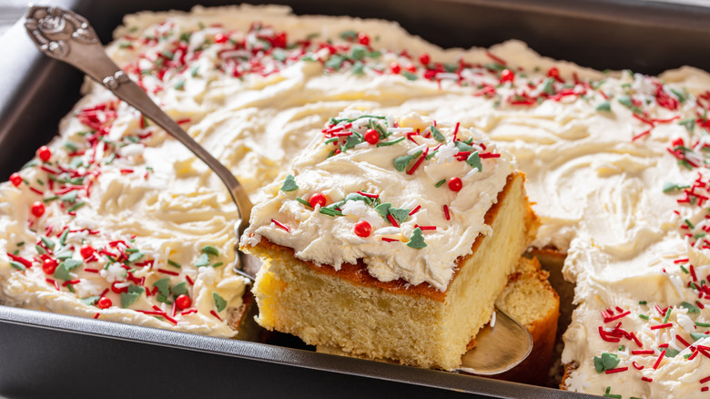 Boxed cake mixes have certainly come a long way in recent years, allowing for convenient birthday celebration bakes and weeknight treats to be whipped up and thrown in the oven in a matter of minutes. Even with the best store-bought cake mixes, however, it's hard to match the taste and texture of a homemade cake. Many boxed cake mixes call for mixing pre-packaged and blended dry ingredients with water, vegetable oil, and eggs, which can result in cakes that do the job, but are a bit lacking in flavor. Luckily, we have a simple trick to easily elevate your boxed vanilla or red velvet cake mix: leave the vegetable oil behind and use a different fat instead.