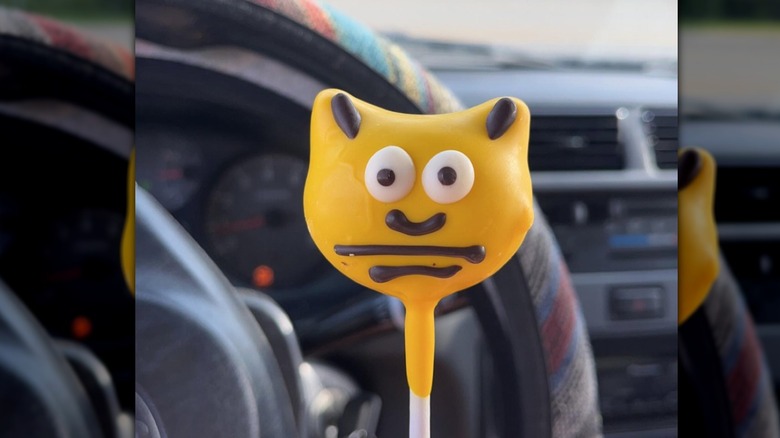 Among other new additions, Starbucks' summer menu features brand-new Bumblebee Cake Pops, as reported by Today. Although the ingredients sound tempting — these pops are a combination of buttercream-infused cake and chocolate-tinged yellow icing — it's the design that's really throwing people for a loop. First of all, this cake pop appears to have ears, which is not a feature one usually associates with bumblebees. As for the face, two eyes sit above three black lines, with a curved top line and two straight bottom lines.
