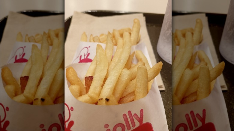 Jolly Crispy Fries come in either the 4-ounce regular or 6-ounce large. The smaller regular serving comes with 560 milligrams of sodium, 18 grams of fat, and 4.5 grams of saturated fat. A large serving of Jolly Crispy Fries has 830 milligrams of sodium, 27 grams of fat, and 7 grams of saturated fat.