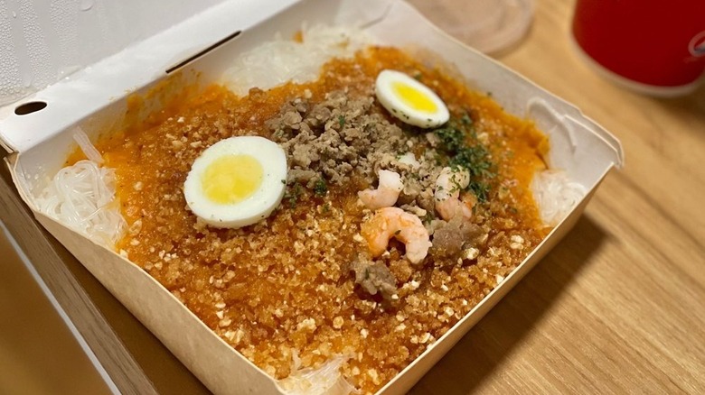 Further concerning is that this meal only has 1 gram of fiber. This brings the ratio of fiber to carbohydrates to 1:49, while health experts advise you to strive for 1:10, according to Harvard Medical School. Maintaining this ratio is better for your heart health, improves your digestion, and helps you feel satiated longer. The Palabok Fiesta also contains sulphite ingredients, which can have effects ranging from diarrhea and abdominal pain to sensitive people and even potentially life-threatening asthmatic complications (via the National Library of Medicine).