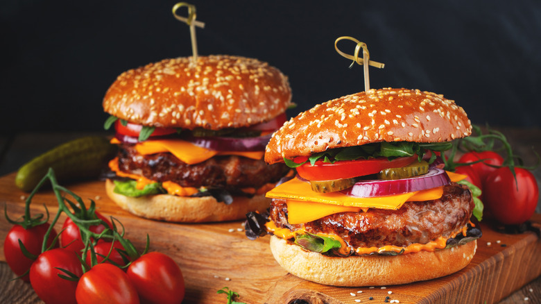 One of the biggest enemies of an impeccable burger is shrinking. What starts out as a perfectly shaped puck can shrink up and bulge in the center if it was made improperly. Most people counteract this issue by making the mistake of flattening the burgers with the spatula. It can also be avoided completely by opting for smash burgers instead, but that requires a griddle. We're looking for the smoky beauty of a burger straight off the grill.