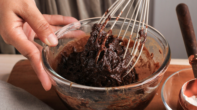 Brownies crumble for all sorts of reasons. Baking for too long can deplete moisture from the mixture, which leaves the finished product drier than it should be. Flubbing the wet-dry ingredient ratio is another common error to avoid. Even cutting into your brownies too soon after they're out of the oven can leave them a crumbly mess. That's why home bakers must exhibit a little patience before carving into these sweet treats, while also making sure they use the right approach when cutting them. Using butter and parchment paper to prevent sticking and a sharp knife for smoother slicing will preserve the integrity of your bake. While decidedly simple, you're sure to get lots of mileage out of this ingenious brownie-cutting technique.