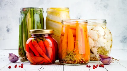 If you are home-canning for the first time and are trying to decide what veggies to start with, you don't have to pick just one. Try them all in the classic Italian antipasto mixed vegetable condiment giardiniera. Giardiniera, which is Italian for "from the garden," is a mix of pickled vegetables like cauliflower, carrots, peppers, celery, green beans, and others in a vinegar brine.
