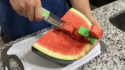 At the same time, those who want to cut their watermelon easily and quickly may find this cuber useful. A huge benefit is that it basically removes the need for a cutting board as it allows you to carve the pieces out of the rind (though it will definitely make a mess on your table or countertop). Further, it also makes transferring the pieces of juicy melon into a bowl much easier since they get stored inside the tool until you empty them out. All in all, this tool is worth $11.25 if you think it would make your life slightly easier, but not a penny more.
