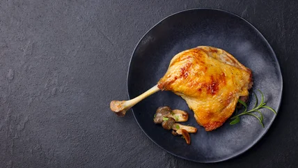 Once you've removed the duck from the sous vide bath, you can either prepare the duck for eating right off the bone, or you can prep it as an ingredient in other dishes. To eat it on its own, the skin must be brown and crispy, so cook it in the oven at 450 degrees Fahrenheit for about seven minutes, or broil it for slightly less time.