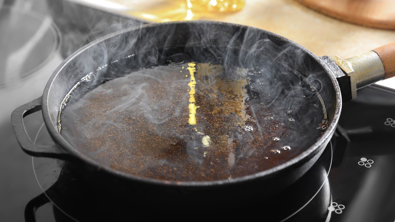 You've got the eggs, you've got the pan, and now there's one crucial item left — the fat. Even if you're using the most advanced nonstick pan in the world, you need a little bit of fat to give your egg sizzle and flavor. Neutral cooking oil or butter (or a combination of the two) are some common options when you're ready to heat up your pan. But if you want to give your crispy fried eggs a major boost, you should use the most flavorful fat you can find.