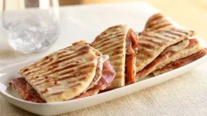 - Place in a warmed panini press and cook until the cheese melts and the bread on the outside has a crispy exterior.