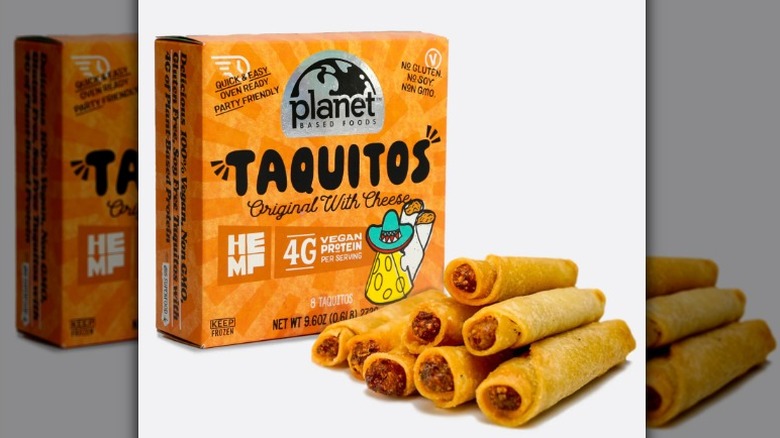 Whether or not you are vegan, these taquitos mark where the list goes from decent to delicious. One Twitter user wrote, "I accidentally ordered plant based protein frozen taquitos on my grocery order. Best damn mistake I've made this year." For $9.99 on the brand's website, you can purchase either kind of taquito in a box of eight to enjoy. These Planet Based taquitos make for an environmentally friendly option for your taquito cravings and are sure to satisfy.