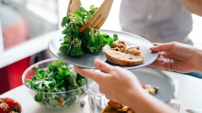 If you're making a salad, you likely want to cram it full of the tastiest, freshest ingredients you can find. While fermented cabbage might not be the first thing you think of, sauerkraut is a natural fit in salads that can seriously elevate them. Sauerkraut's probiotic qualities give your salad a gut-boosting edge, and it becomes even more useful when combined with fresh veggies like tomatoes or onions, which are prebiotics. "This is because prebiotics are the food that probiotics feed on to boost your gut health," says registered dietitian Alyssa Pike to Well+Good.