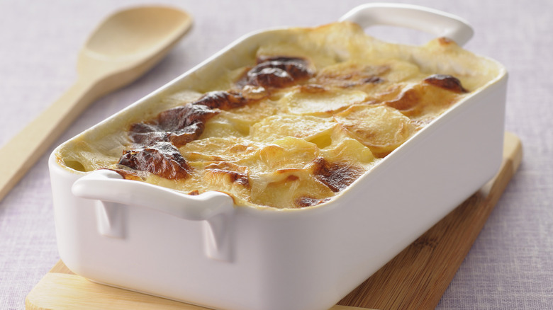 For an easy potato-sauerkraut combo, try a potato and sauerkraut gratin. Layer thinly sliced potatoes in a casserole dish, and between each layer, add sauerkraut. When it's fully layered, pour over a cream that's been infused with herbs, spices, and garlic. Top it with cheese if you want things to be ultra-luxurious. Then bake in a hot oven. Including sauerkraut in this substantial dish helps to cut through any heaviness.