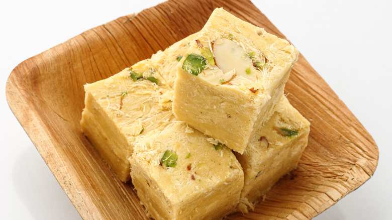 India is another nation with ancient claims to a cotton candy predecessor in the form of two special occasion sweets that have a similar floss-like texture. Soan papdi – also called patisa, san papri, sohan papdi, shonpapdi, and sometimes known as Indian candy floss — is made from ghee, flour, and sugar and seasoned with cardamom. Though the origin of this sweet is not officially known, and many contemporary versions use regular flour, traditional recipes use gram flour made from ground chickpeas. This means that the classic version of this dessert is naturally gluten-free. Soan papdi is especially popular during Diwali, the Festival of Lights that celebrates the triumph of light over darkness. This Indian treat is usually served in circular or square flakes and often topped with roasted pistachios, almonds, or crushed rose petals. The citrusy notes from the cardamom provide soan papdi's distinct flavor profile, and its texture is characteristically flakier than other floss candy desserts made from similar ingredients.