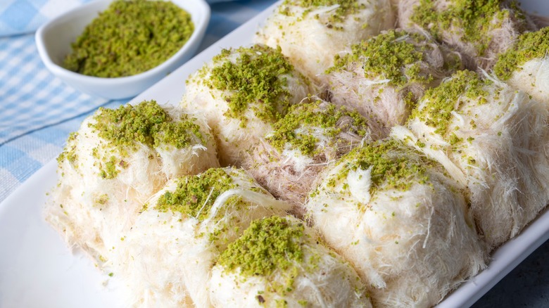 Taking inspiration from Iran's pashmak, Turkey has its own cottony confection that can be traced back to the 15th century. Also called string halva, stretched halva, and floss halva, pişmaniye is a Turkish sweet said to have originated in Kocaeli, slightly southeast of Istanbul. The process and ingredients that go into producing this dessert are virtually the same as for pashmak, though this Turkish variety is often distinguished by the addition of one key ingredient for a unique flavor, tahini, a paste of sesame seeds which contributes to a stickier consistency and lends an even bolder, nuttier taste.