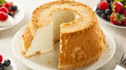Angel food cake is an ideal dessert to serve in the heat of the summer when you crave something sweet, yet light and airy. Compared to other cakes that rely on baking soda or baking powder as leavening agents, the beloved American classic sponge cake achieves its rise and fluffy, cloud-like nature by whipping egg whites (typically up to a dozen in a standard cake recipe).