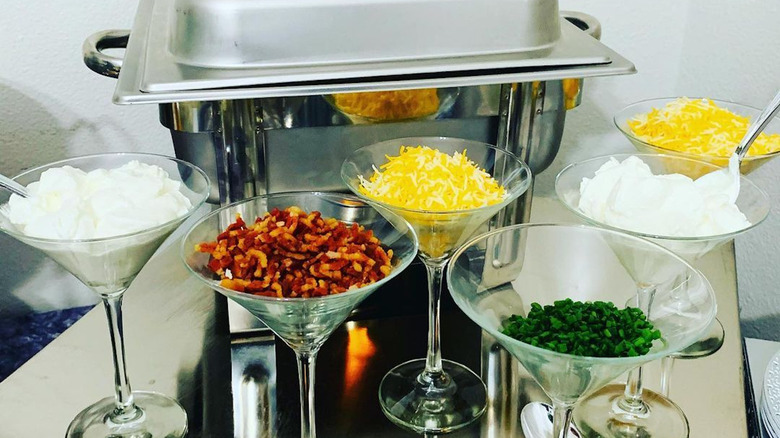 According to an Eater article, the trend may have newfound fame thanks to social media, but it has existed since the '90s. "The mashed potato martini bar was a staple food experience for a long time," said John D'Arcangelo, managing director of the Abigail Kirsch catering company, "...because it brings together elements of surprise, glamour, and guest interaction."